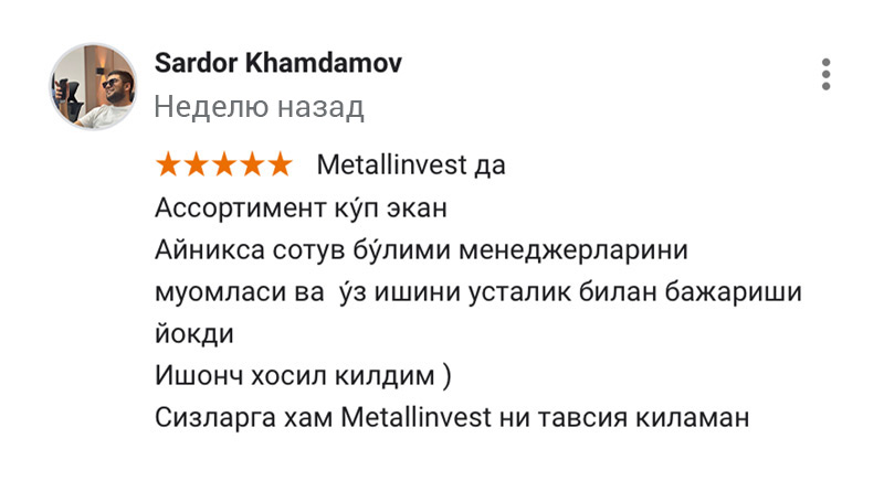 METALLINVEST – bu shunchaki metall mahsulotlarini yetkazib beruvchi emas. Bu sizning ishonchli hamkoringiz bo'lib, buyurtmangizni har bir bosqichida yuqori sifatli xizmat, yuqori malaka va tartibni kafolatlaydi.